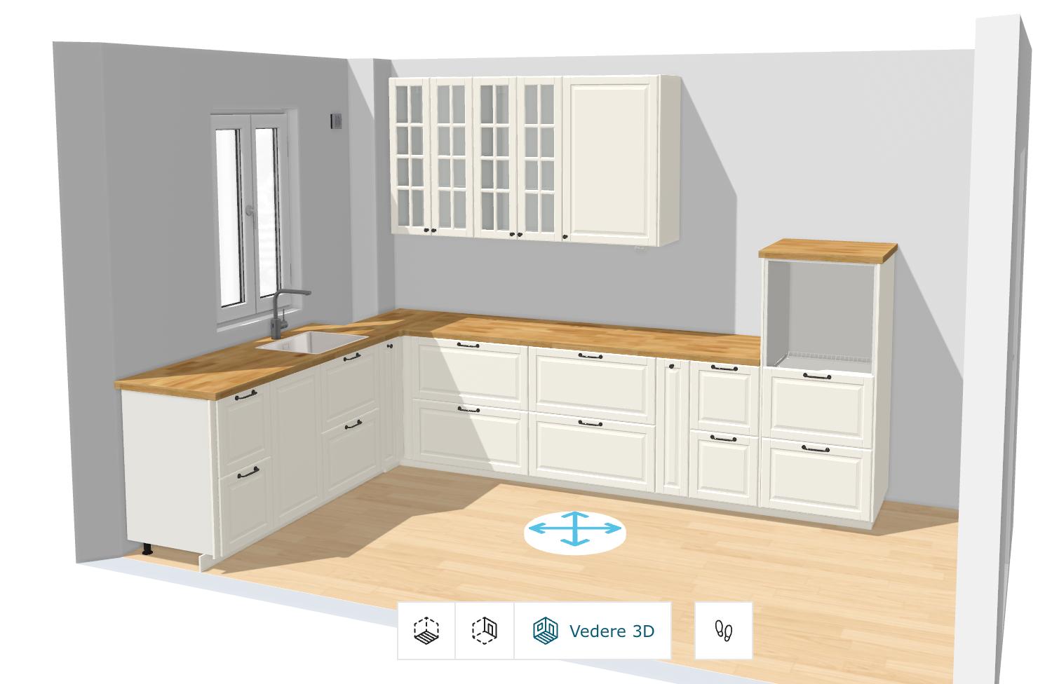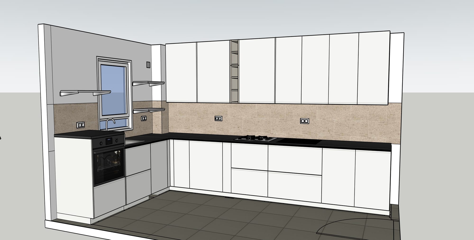 Pentru ilustrare, am reprodus în SketchUp propunerea inițială primită de B. de la furnizorul de mobilă:
